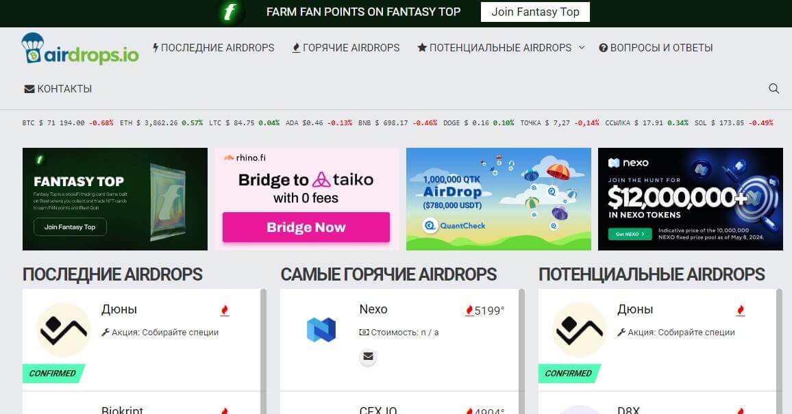 Где смотреть актуальные Airdrop криптовалют в 2024 году