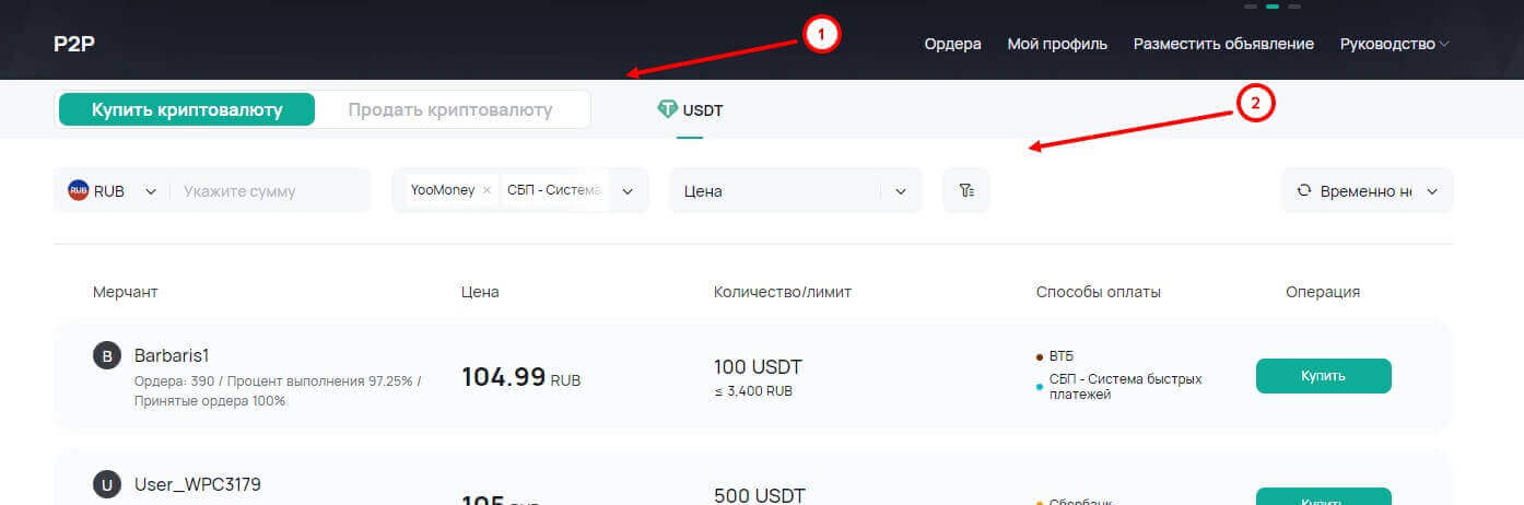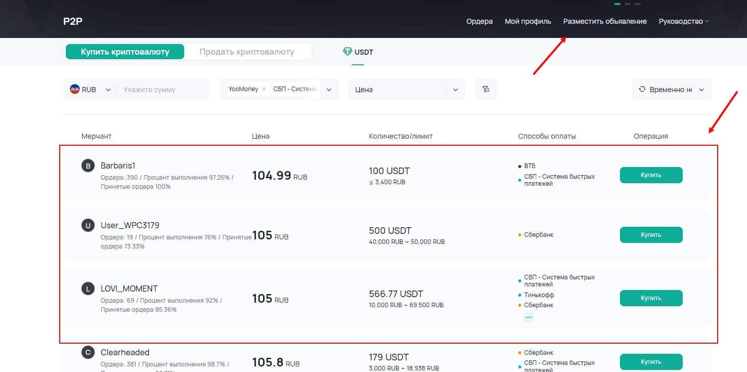 - При выборе предложения другого пользователя, внимательно изучите условия сделки и рейтинг продавца.