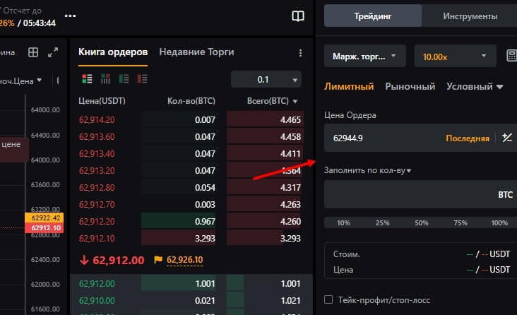 - В самом начале изучите, как функционирует кредитное плечо и маржинальная торговля. Кредитное плечо позволяет увеличить потенциальную прибыль, усиливая воздействие капитала трейдера, но и усиливает уровень риска потерять средства. Есть опция выбрать отношение плеча в диапазоне от 1x до 100x. Также выберите тип ордера (лимитный с установкой необходимой цены и рыночный с немедленным исполнением)