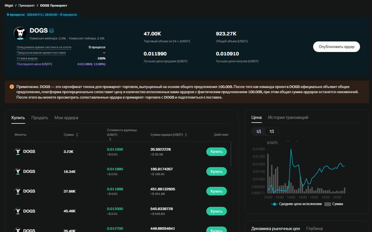 Вопрос листинга токена DOGS волнует многих инвесторов и участников рынка криптовалют. На данный момент точные сроки листинга этого токена на крупных криптобиржах остаются неопределенными. В настоящее время токены DOGS доступны к приобретению на платформе BitGet в режиме премаркета, предоставляя инвесторам уникальную возможность стать одними из первых держателей актива.