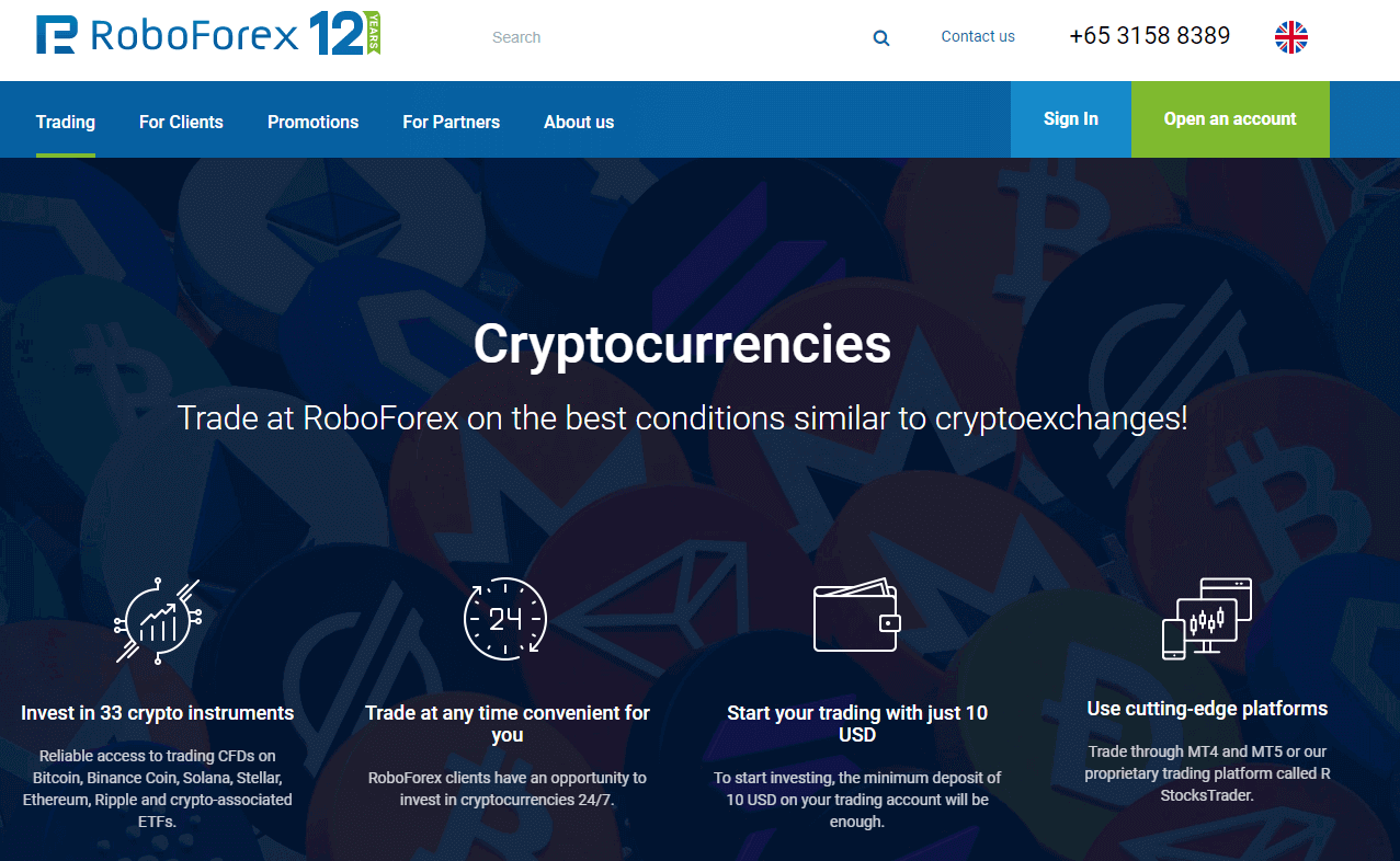 На официальном сайте трейдеры получают возможность криптотрейдинга 33 парами с доступным даже для начинающего объемом минимального счета в $10. Предлагаются как известные многим терминалы от Metatrader, так и специализированные разработки вроде cTrader и Rtrader, подходящие для автоматизированной и высокочастотной торговли.