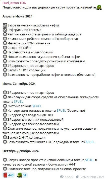 Как уже было сказано выше, каждый пользователь в приложении Fuel Jetton телеграм будут нефтедобытчиком, добывая виртуальное топливо. В процессе работы проекта можно обменять нефть, получив монету $FUEL на криптовалютных биржах. Потом токен можно продать за $USDT и вывести на банковскую карту / электронный кошелек с помощью P2P.