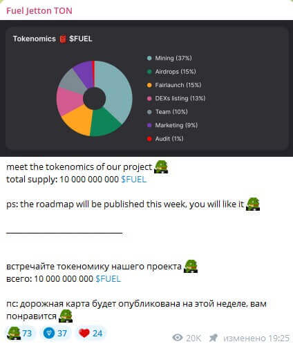 Листинг нативного токена проекта Fuel Jetton судя по дорожной карте назначен на июль – сентябрь 2024 года в децентрализованных биржах (DEX). Читайте последние новости на официальных аккаунтах в социальных сетях проекта.