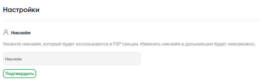 Наряду с верификацией, одно из обязательных условий для использования функционала прямого бартера – работа с уникальным никнеймом. Если данная настройка не была произведена ранее, система запросит необходимую информацию.