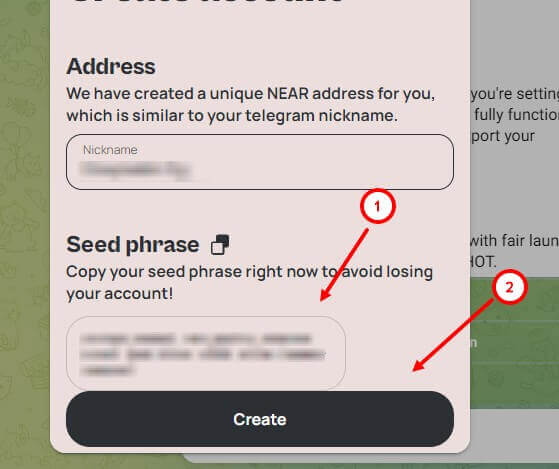 Шаг 1. Создание кошелька NEAR в Телеграмме