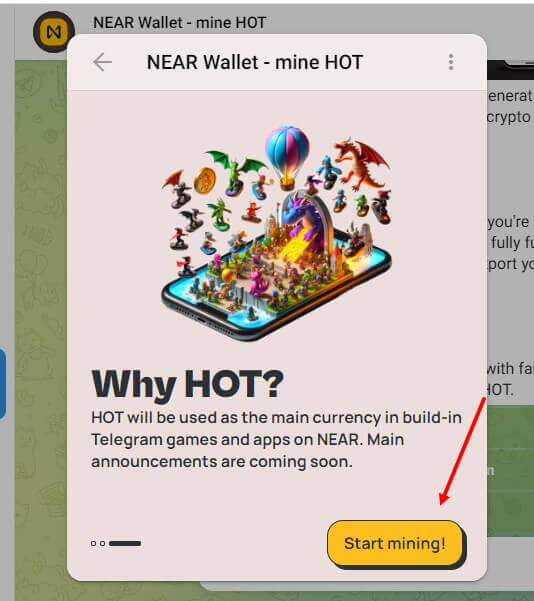 Одним из интересных аспектов майнинга ХотКоина в Telegram является возможность легко получать бесплатные монеты HOT. Процесс подачи заявок удобен для пользователя и позволяет вам немедленно получить вознаграждение за свои усилия по добыче полезных ископаемых. Вот как вы можете получить свои бесплатный токен HOT через кошелек NEAR в Telegram: