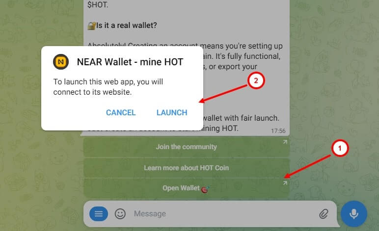 Чтобы приступить к майнингу ХотКоина, первым шагом является настройка кошелька NEAR в Telegram. Создание кошелька NEAR — это простой, но важный процесс, который закладывает основу для вашей майнинговой деятельности. Выполните следующие шаги, чтобы начать настройку кошелька:
