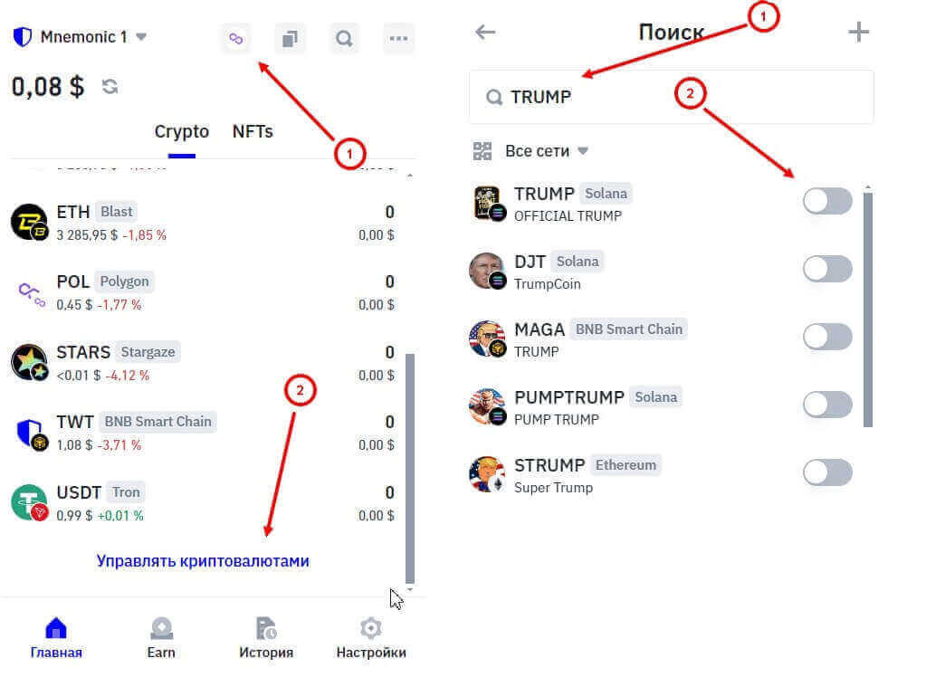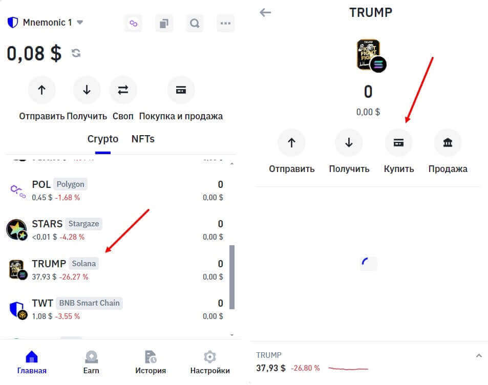 Пользователи могут зарабатывать на криптовалютном активе Trump Coin (Трамп Коин) двумя способами: