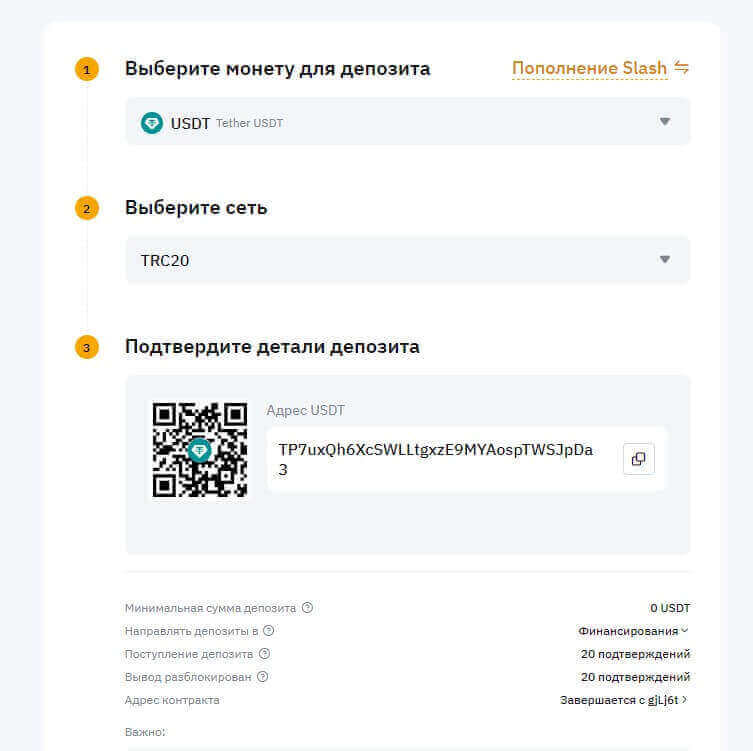 - Откроется новая страница, где нужно выбрать, куда направлять депозит – финансирование или единый торговый аккаунт (ЕТА) и ознакомится с деталями сделки. После этого согласитесь с правилами и условиями использования и нажмите на кнопку “Подтвердить”.