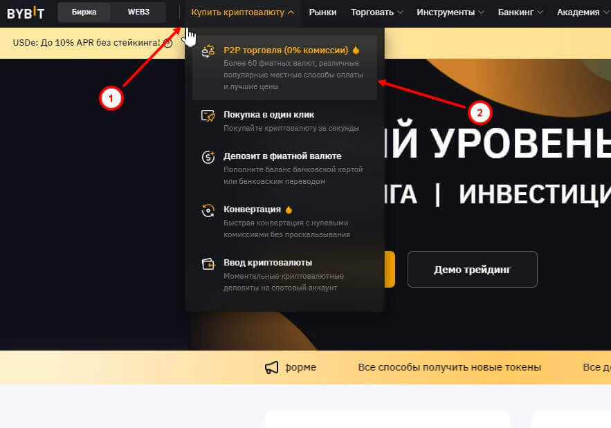 Одним из самых удобных и широко доступных способов купить Tether USD (USDT) за рубли в России являются P2P-площадки (peer-to-peer). Особенность таких платформ заключается в прямом взаимодействии между покупателями и теми, кто продают, что позволяет обойтись без комиссии. Процедура покупки на ByBit и других биржах, которые можно найти в нашем рейтинге состоит из нескольких шагов.