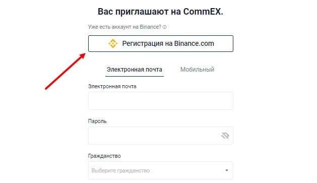 - Выбрать опцию «Регистрация на Binance.com»;