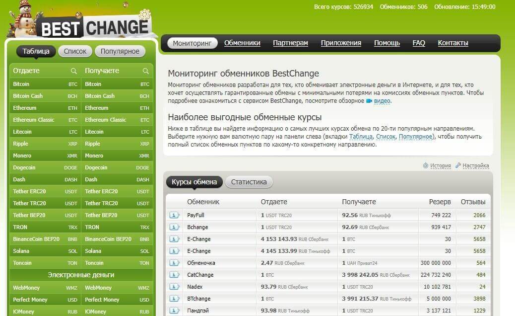 Другим способом пополнить баланс с банковской карты является пополнение с помощью различных криптовалютных обменников. Процедура достаточно проста, однако курс может быть не самым принятым. Первым делом нужно выбрать обменник, для этого рекомендуем пользоваться дополнительными сервисами, мониторящие такие ресурсы. Например, можно воспользоваться сервисом BestChange.
