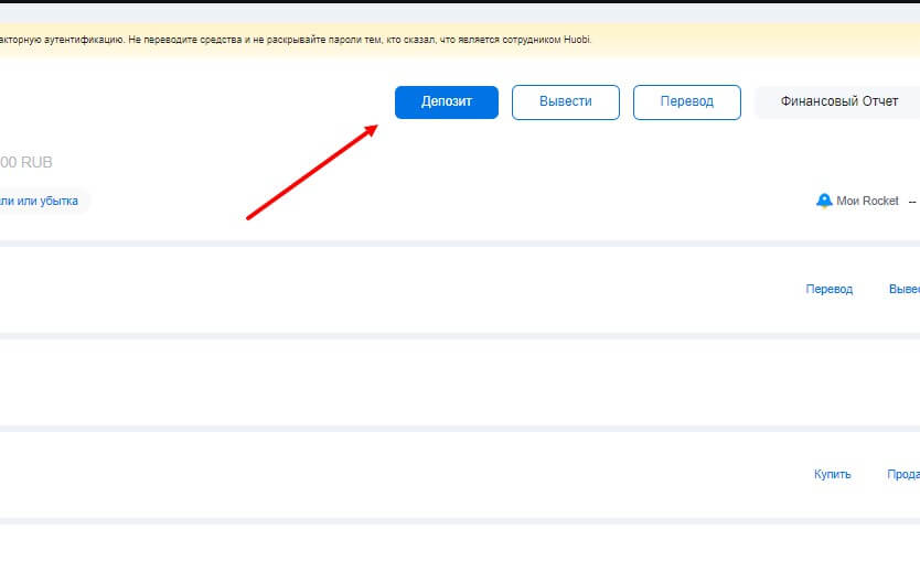 Откроется новая страница, где нужно нажать на “Депозит”.