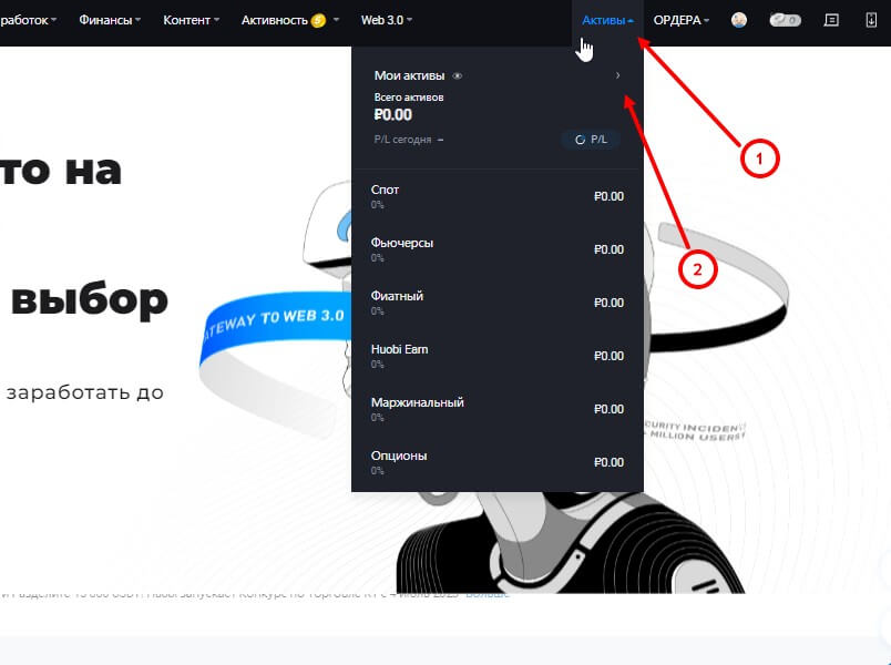 Первое, что нужно сделать – перейти в раздел с личными активами: наведите на “Активы” и совершите переход в раздел “Мои активы”.