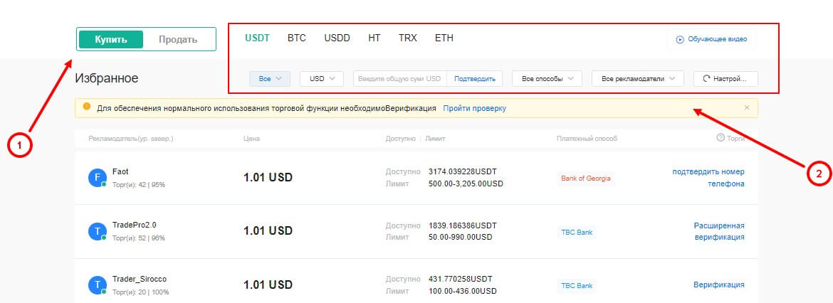 Это один из самых желаемых методов на Хуоби – в процессе обмена действует нулевая комиссия. P2P (Peer-to-peer) – обмен наличных средств на криптовалюту без участия третьих лиц. Криптовалютная биржа является посредником и арбитром в спорной ситуации.