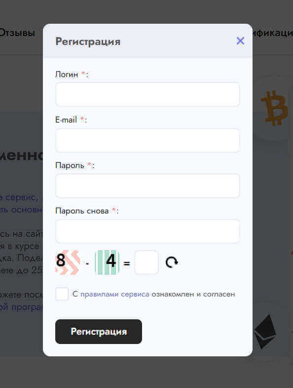 Для начала вам необходимо зарегистрироваться на выбранном обменнике (например, 16tonn, Pocket Exchange, Baksman или Galaxy Coin Cash, предлагающие оптимальные условия сотрудничества) для получения большей выгоды при дальнейшем взаимодействии. Процесс включает ввод личных данных: имя, электронная почта и, возможно, номер телефона.