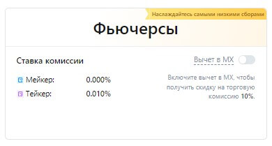 Пользователи могут уменьшить комиссии, участвуя в программе VIP или удерживая токены MX, которые предоставляют скидки на торговые операции в размере 10% на деривативном рынке в роли тейкер (taker). Полный список комиссий доступен на официальном сайте биржи в разделе «Комиссии». Там же представлена детальная информация по каждому типу комиссий.