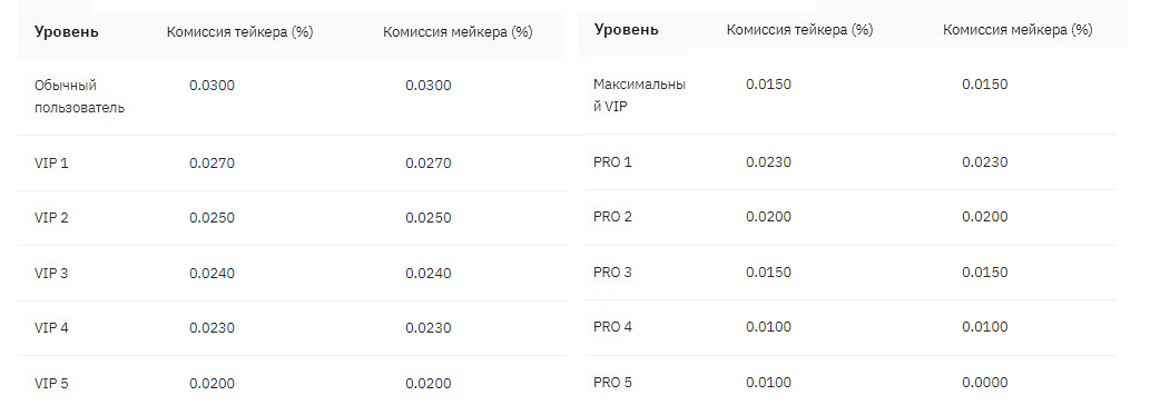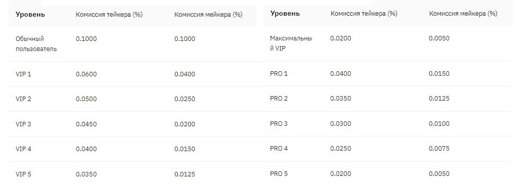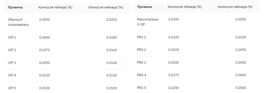 Чтобы понять, как достигнуть того или иного VIP и PRO уровня на спотовом, деривативном рынках или при торговле опционами, необходимо изучить информацию на странице криптовалютной биржи по ссылке.