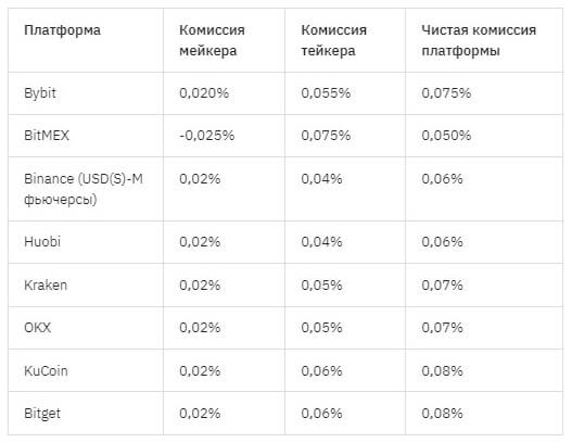 Комиссия на фьючерсном рынке (бессрочные контракты)