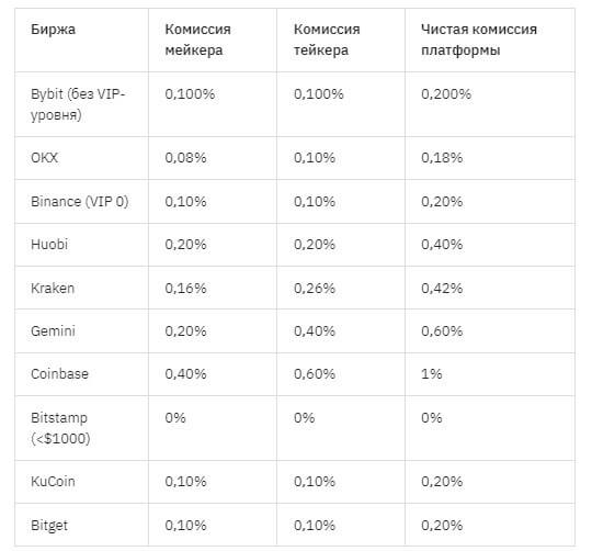 При выборе любой торговой площадки, первое, на что смотрят пользователи – уровень комиссии. Предлагаем вашему вниманию таблицу, со сравнением для аккаунтов начального уровня на торговлю по любым типам торговли: спот, фьючерс и опционы. В качестве объективного сравнения было взято несколько популярных криптовалютных бирж: OKX, Binance, Huobi, Kraken, Gemini, CoinBase, Bitstamp, KuCoin и BitGet.