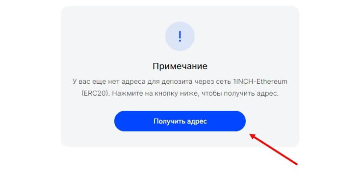 - Получите адрес, нажав на кнопку “Получить адрес”;