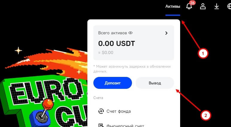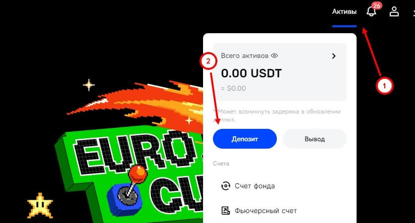 - Открыть раздел “Активы” и во всплывающем окне нажать на “Депозит”;
