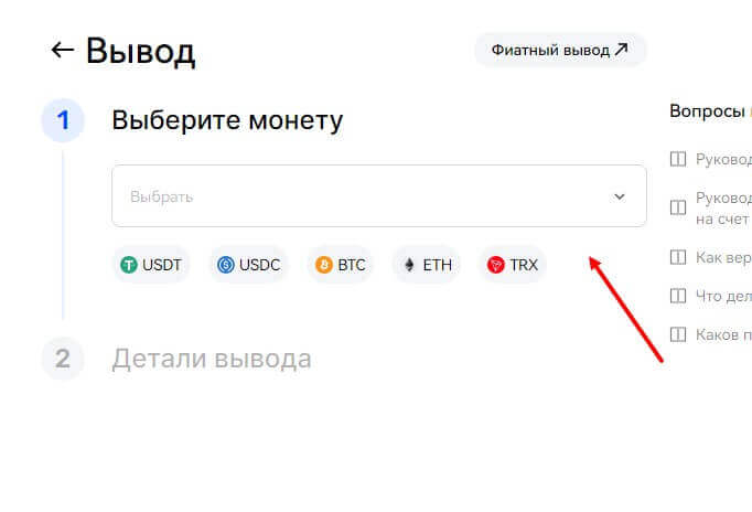 - Затем в открывшейся странице выберите монету, которую планируете вывести;