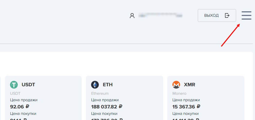 - Нажать на иконку в виде трех полос в правой части страницы;