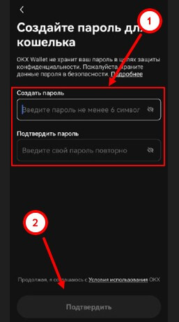 Первый вариант будет оптимальным, если имеется аккаунт в бирже OKX, второй и третьи, если планируете создать без привязки к основному счету. В качестве примера пройдем регистрацию с мнемонической фразой.