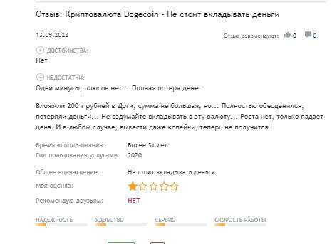 Как можно понять, в целом отзывы положительные, однако есть и негативные, которые оставляют люди не понимая суть мемных цифровых монет. В отзыве клиент говорит, что вложили 200 тысяч рублей в монету, а после она обесценилась, что было предсказуемо, ведь токен подкреплен лишь верой людей и ничем больше.