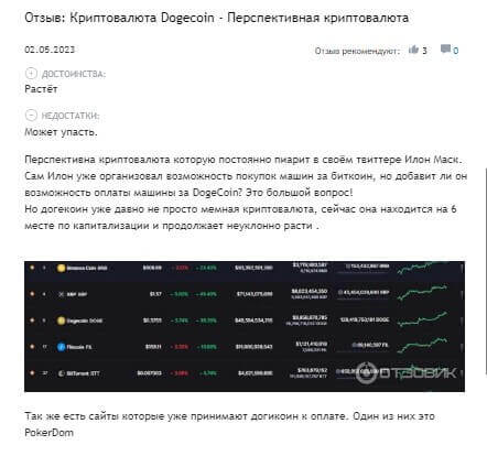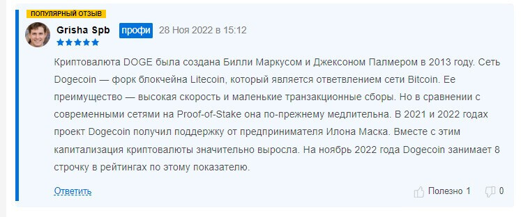 В другом отзыве пользователь рассказал о том, что по сравнению с другими монетами, скорость транзакции по-прежнему медлительны. Также отметил про то, что мы писали – поддержка предпринимателя Илона Маска поспособствовала тому, что монета вошла трейдеров.