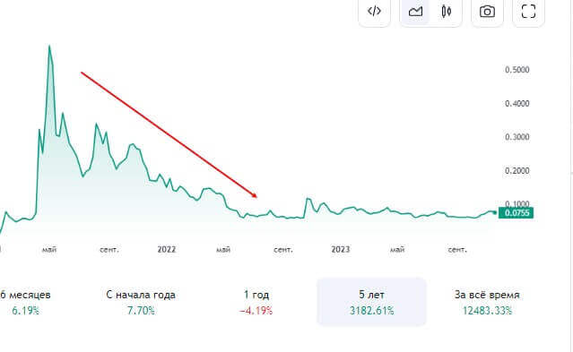 После этого монета начала дешеветь и вначале стоила 0,3713 долларов, а следом за этим стремительно падала, пока не остановилась в районе 6 – 11 центов, что и происходит на данный момент.