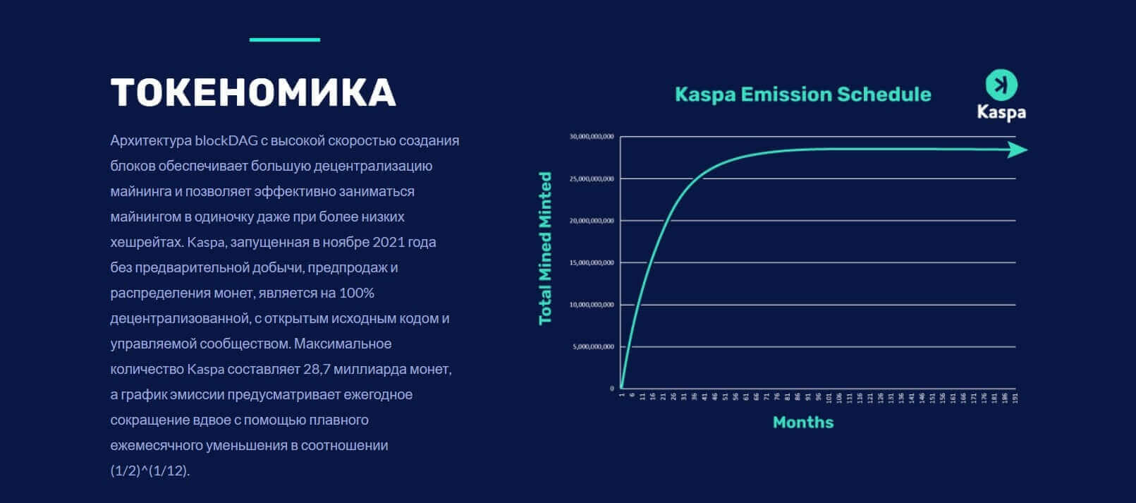 Одной из заметных характеристик Kaspa является её высокая пропускная способность, что позволяет сети обрабатывать огромное количество транзакций одновременно, сохраняя при этом стабильность и надежность. А постепенная эмиссия токенов KAS призвана поддерживать долгосрочное развитие проекта, обеспечивая при этом справедливое распределение монет среди участников сети. Ограниченный максимальный запас в 28,70 миллиарда монет гарантирует защиту от инфляции, делая Kaspa привлекательной инвестицией на будущее.