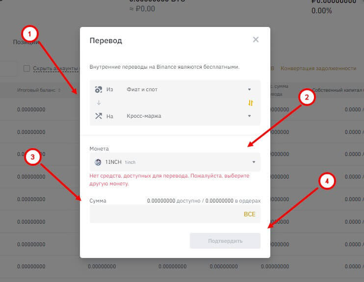 Процедура, связанная с выводом криптовалюты с маржинального счета полностью аналогичен пополнению. Но нужно выбрать из “Кросс-маржа” или “Изолированная маржа” в “Фиат и спот”. После ввода суммы нажмите на “Подтвердить” и деньги поступят на ваш спотовый счет.