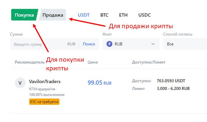 После таких процедур можно начинать поиск доступных предложений от других пользователей или создавать свои собственные объявления о покупке или продаже криптовалюты. Существует масса особенностей, связанных с подобным видом торговли: