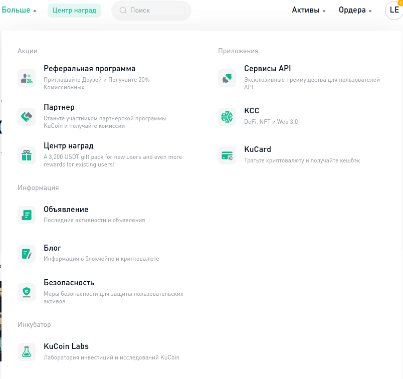 Все, что не связано с указанным ранее функционалом, размещено здесь. Речь об участии владельцев аккаунтов в реферальных и партнерских активностях. Информационная часть раздела представлена последними новостями и информацией о развитии криптовалютных технологий, а также рекомендациями по усилению мер безопасности доступа к личным криптофинансам, чтобы третьи лицам не смогли войти в аккаунт.