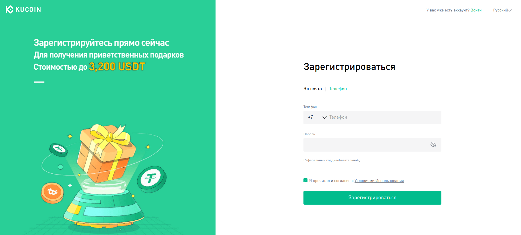 Опционально вводится реферальный код, если регистрация происходит через партнерскую ссылку (еще один способ пассивного заработка, о котором расскажем далее).