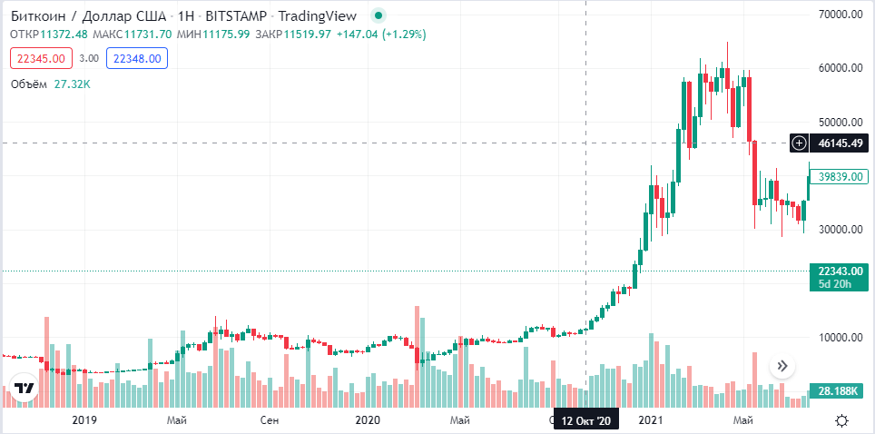 В апреле 2019 стоимость BTC к доллару на бирже составляла порядка 3000. Через 2 года цена биткоина приблизилась к отметке в 70 000 USD. При покупке BTC на любую сумму весной 2019 можно было приумножить капитал в 20 раз за 2 года. То есть для заработка первого миллиона рублей на инвестициях в криптовалюту достаточно было вложить в биткоин в 2019 всего 50 000 RUB.
