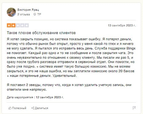 Пользователь из Турции Виктория Ярец рассказал о том, что интерфейс компании глючит. После этого, пользователь не смог продать позицию, которая по итогу стала убыточной. При этом служба поддержки не смогла помочь решить проблему и после 5 созданного тикета они все же смогли ответить и отправили пользователя в сервисный отдел.