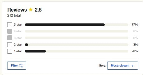 Говоря об общем рейтинге Bingx на сайте TrustPilot – 77% (163 человека) пользователей из 212 человек оценили сервис на 5 звезд, еще 3% (6 человек) на 2 звезды и на 1 звезду около 20% (42 человека). Ни одного отзыва на 4 или 3 звезды не имеются.