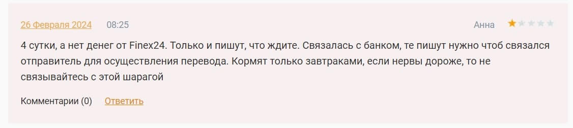 Негативные отзывы клиентов о Finex24