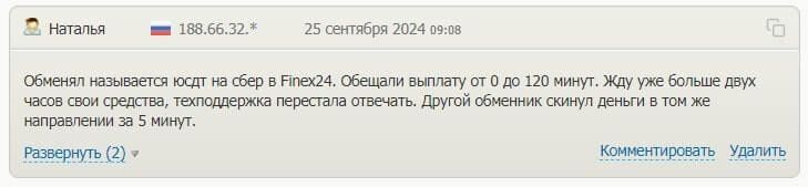 В интернете можно найти негативные отзывы Finex24, которые касаются различных аспектов работы обменника.
