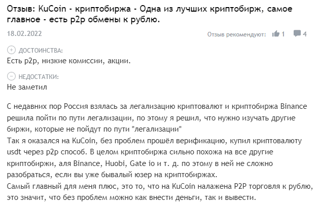 В следующем фидбеке высоко оценивается возможность использования российского рубля в расчетах при закрытии сделок на платформе P2P. С учетом того, что подобный функционал для многих площадок не был свойственен еще во времена отсутствия санкций, с их ужесточением сохранение подобных возможностей — еще один показатель настоящей независимости площадки от внешних регуляторов.