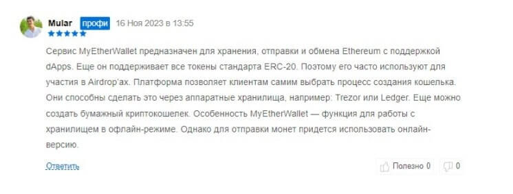 Отзывы о кошельке MEW от реальных пользователей из интернета