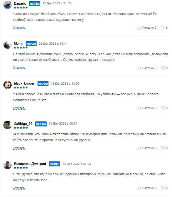Как можно понять, некоторые из отзывов носят положительный окрас, а с некоторыми негативными мы не согласны. Рекомендуем перед началом сотрудничества прочитать не только отзывы, но и пользовательское соглашение, а также информацию, описанную как в сторону бонусов, так и работы торговой площадки. В целом, средняя оценка 4 звезды из 5, что означает надежность биржи HTX (ex. Huobi), являющаяся одним из лидеров.