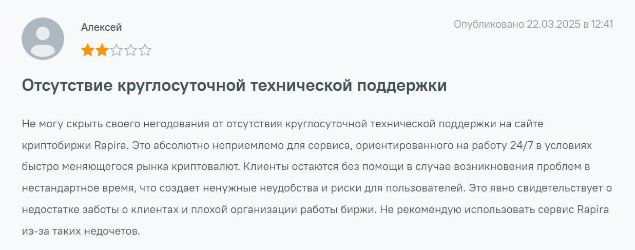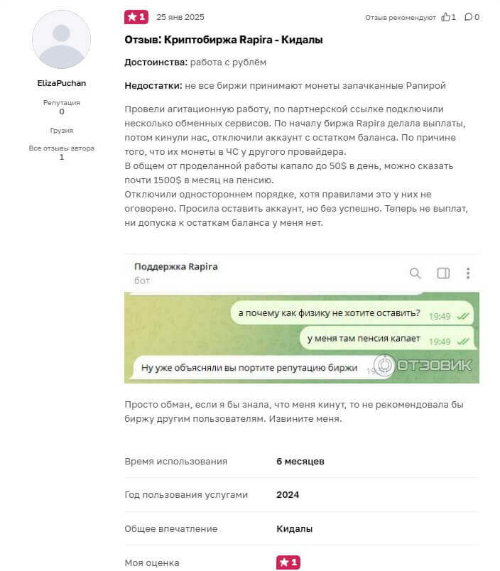 Несмотря на рост популярности криптовалютных площадок, криптобиржа Rapira сталкивается с рядом негативных отзывов со стороны своих клиентов.