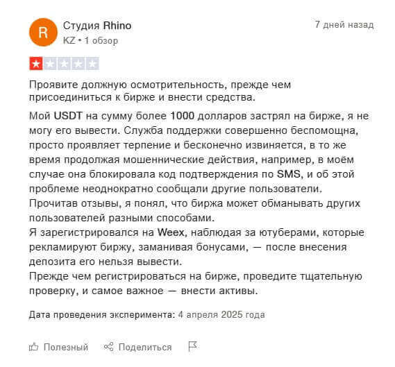 Негативные мнения от трейдеров: реальные отзывы о бирже Weex на 2025 год