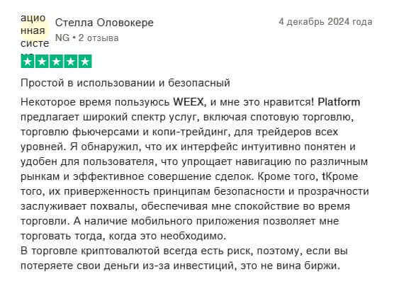 Положительные отзывы клиентов о Weex: мнения реальных людей