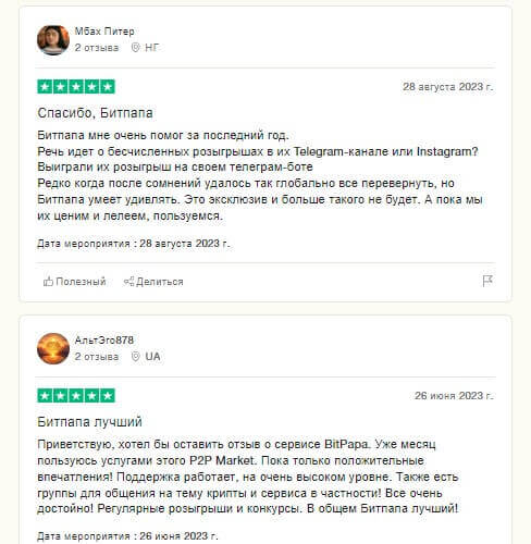 Предлагаем ознакомиться ещё с одной подборкой отзывов, чтобы имели представление о проекте BitPapa. В них отражается основная мысль пользователей, имеющих отношение к проекту.