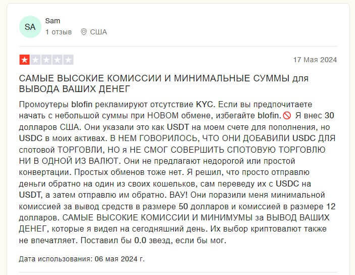 Негативные отзывы от трейдеров о BloFin